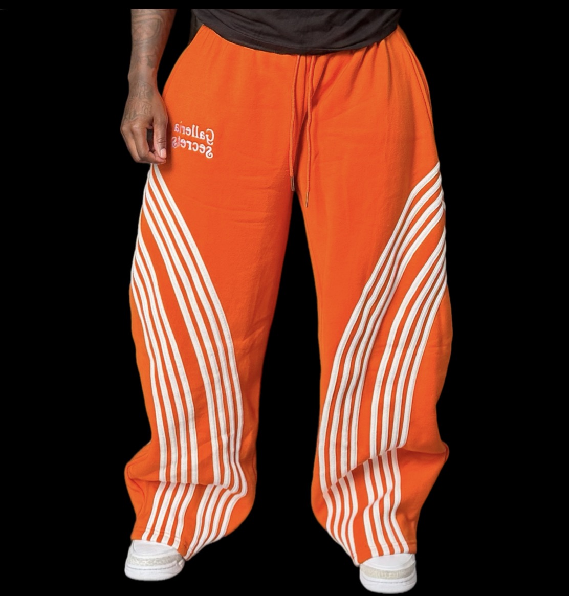 These Orange GS Striped Sweats are made from French Terry, weighing 400gsm. This material ensures a comfortable and cozy feel. The sweats are true to size, providing a reliable fit. 📏 (see size chart)